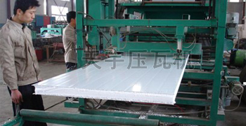 彩鋼保溫復(fù)合板材是一種新型的建筑材料,其內(nèi)、外面層為耐候彩色 建筑用鋼板、中間填充巖棉、聚苯乙烯{EPs)、聚氯酯及玻璃棉等保溫 隔聲材料。泡沫復(fù)合板設(shè)備具有良好的耐候、保溫、隔聲、高強(qiáng)度